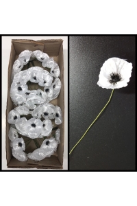 Single silk poppies for laying on graves or cenotaphs -- supplied with card to attach to stem. Only available in boxes of 24.